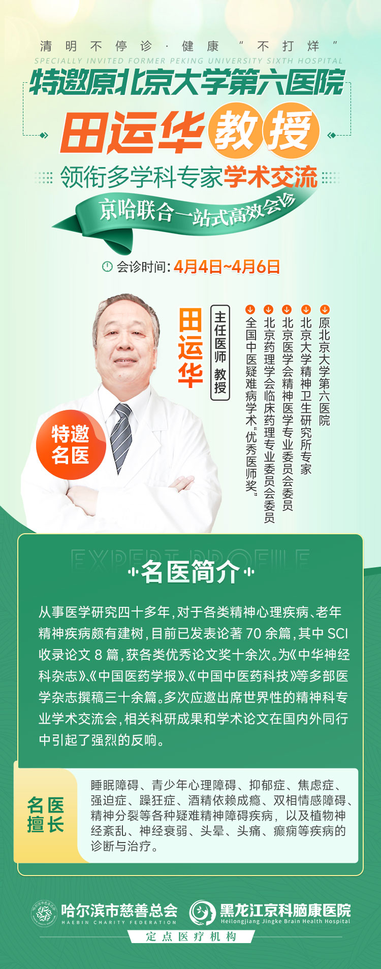 4月4日-6日【清明节专家】特邀原北京大学第六医院田运华教授会诊