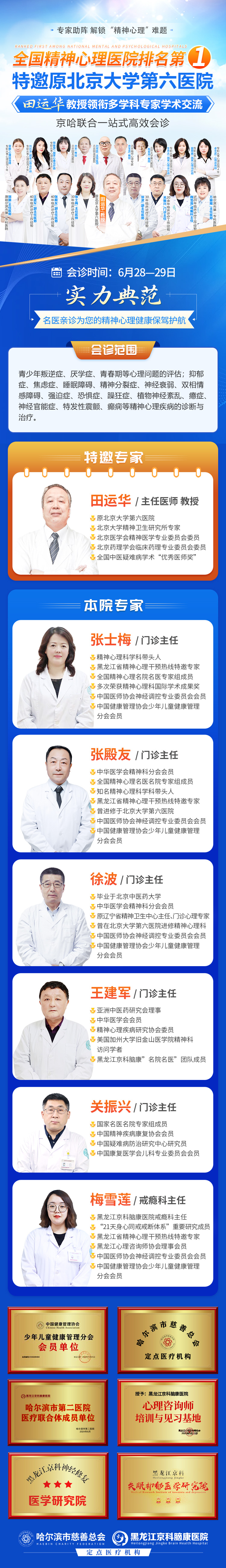 【会诊通知】6月28日-29日特邀原北京大学第六医院田运华坐诊